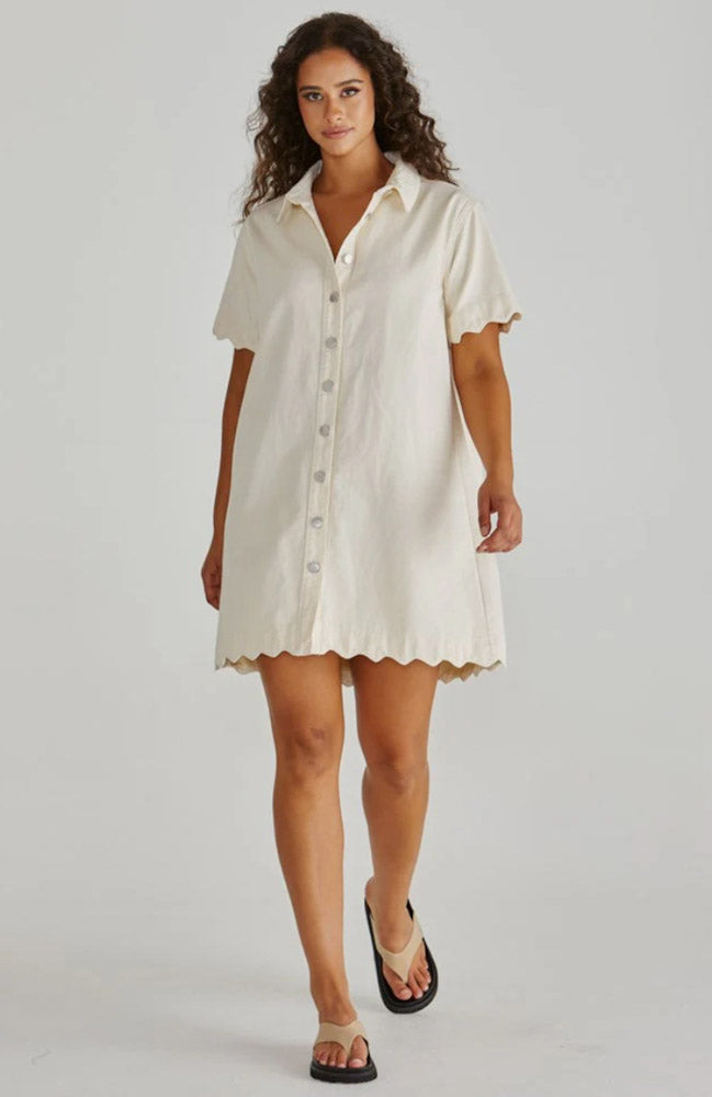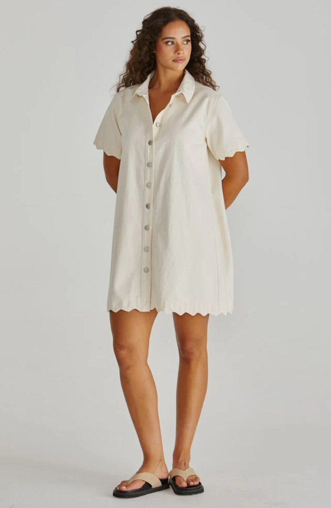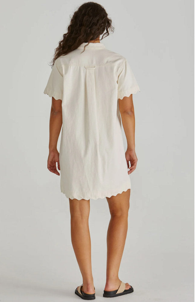 Vale Scalloped Denim Dress - Parchment