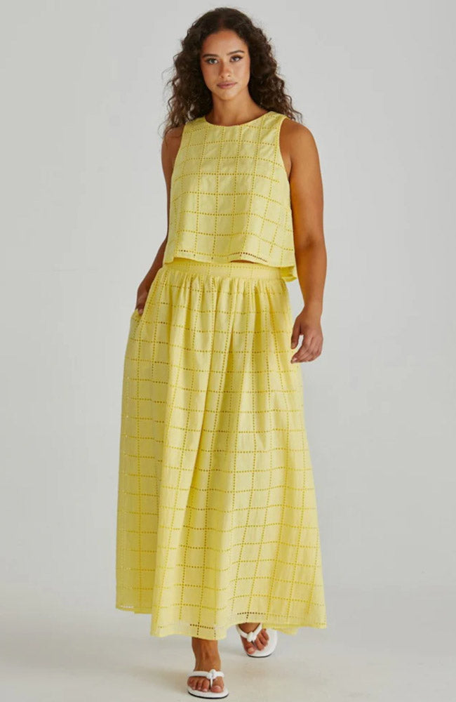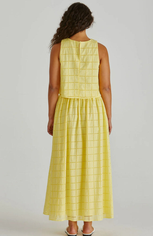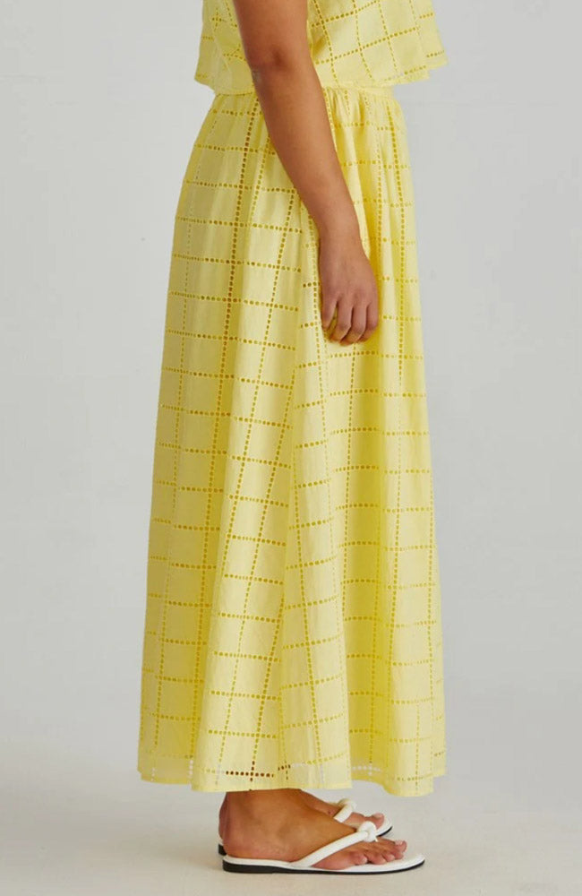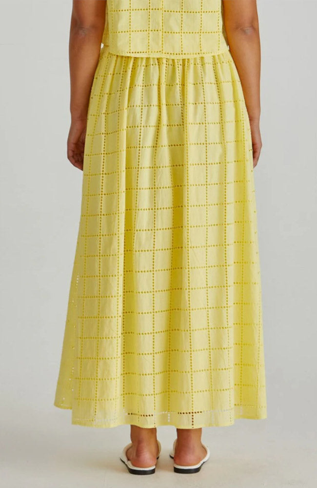 The Helmi Full Skirt is all about feminine movement and soft texture. Crafted in a grid-style broderie with an elasticated back waist, it’s flowy and flattering. Lined for ease and comfort.